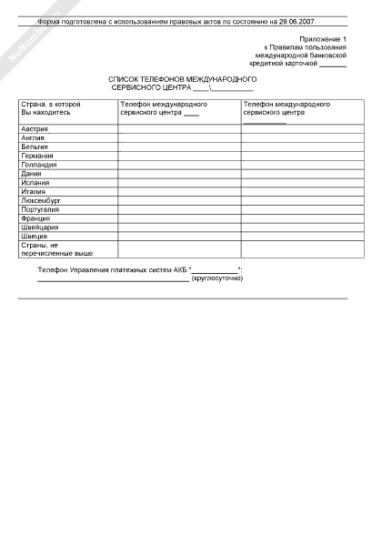 - 517Список телефонов международного сервисного центра (приложение к правилам пользования международной банковской кредитной карточкой)