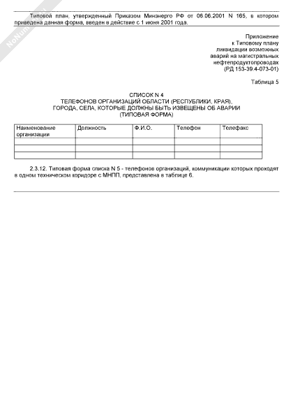 - 518Список телефонов организаций области (республики, края), города, села, которые должны быть извещены об аварии (таблица 5)