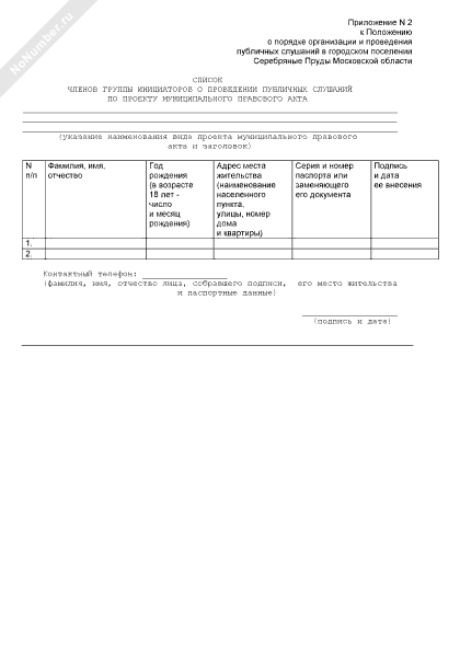 - 572Список членов группы инициаторов о проведении публичных слушаний по проекту муниципального правового акта в городском поселении Серебряные Пруды Московской области