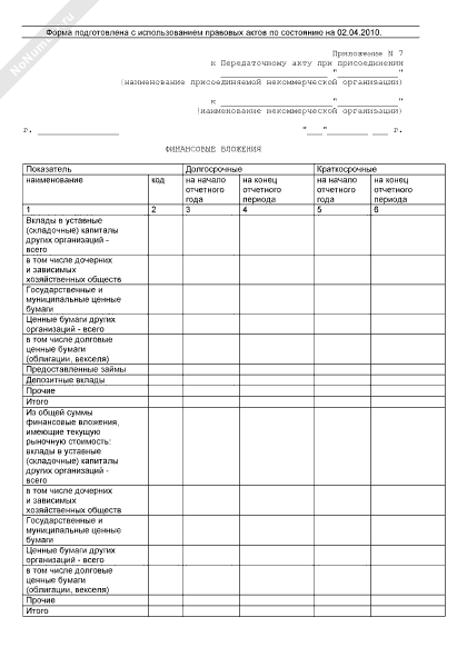 - 568Список финансовых вложений (приложение к передаточному акту при присоединении некоммерческой организации к некоммерческой организации)
