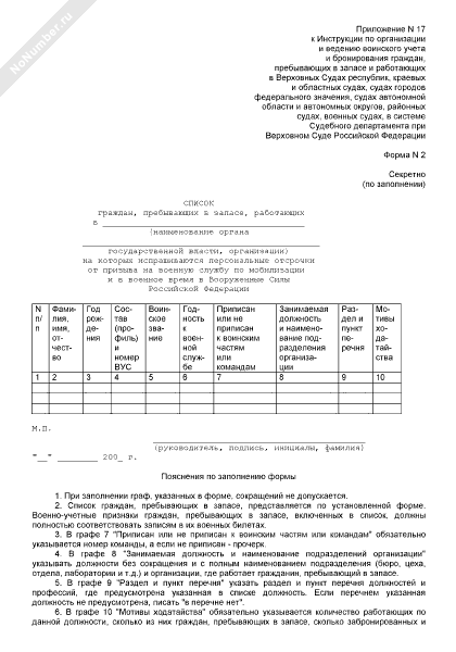 Список граждан, пребывающих в запасе, на которых испрашиваются персональные карточки от призыва на военную службу по мобилизации и в военное время в Вооруженные Силы Российской Федерации (форма № 2)