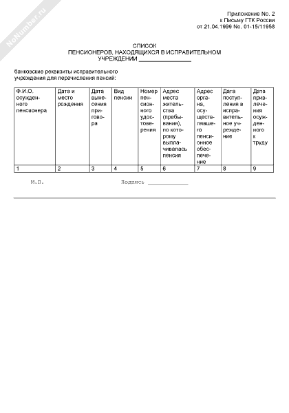 Список пенсионеров, находящихся в исправительном учреждении