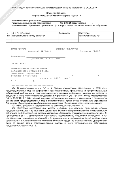 Список работников, направляемых на обучение по охране труда