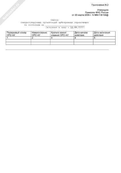 Список саморегулируемых организаций арбитражных управляющих (рекомендуемый образец заполнения)