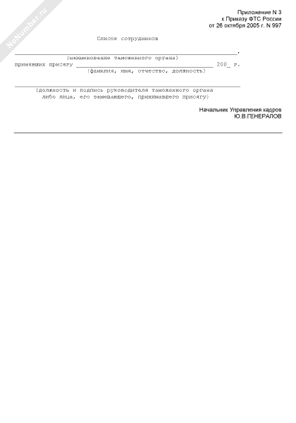 Список сотрудников таможенного органа, принявших присягу