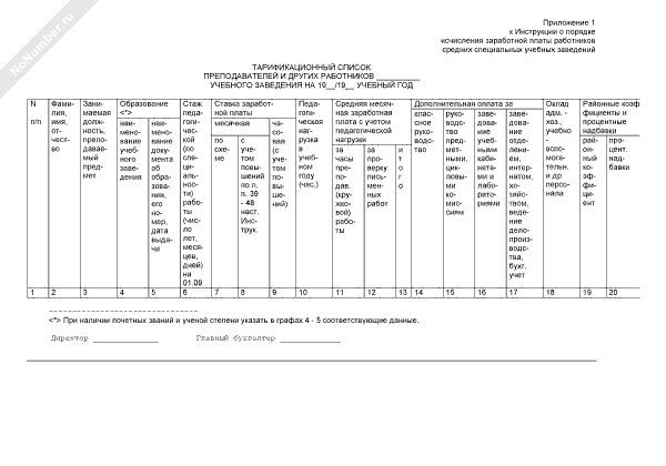 Тарификационный список работников. Должности руководителей (форма № 1)