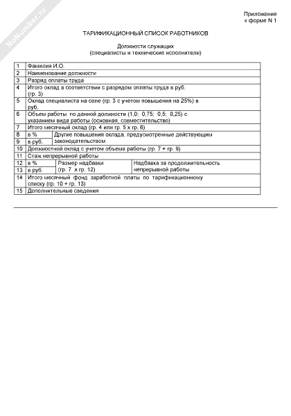 Тарификационный список работников. Должности руководителей (форма № 1)