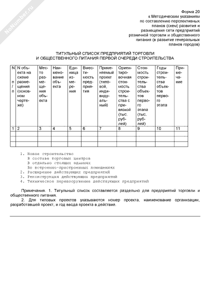 Титульный список предприятий торговли и общественного питания первой очереди строительства (форма № 20)