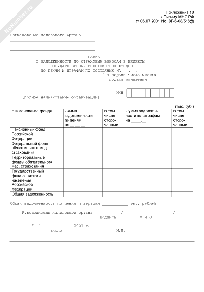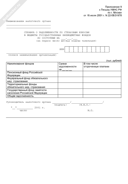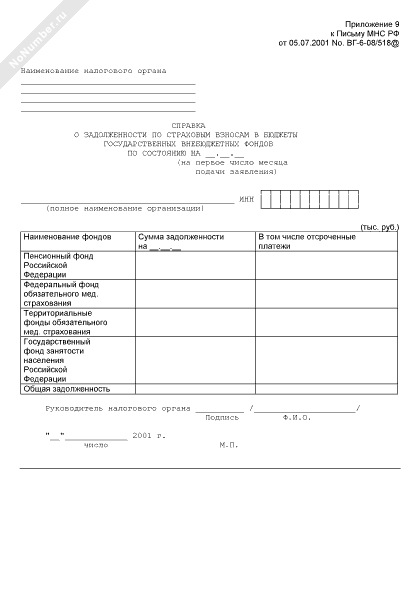 - 326Справка о задолженности по страховым взносам в бюджеты государственных внебюджетных фондов