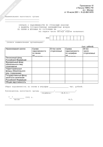 - 327Справка о задолженности по страховым взносам в бюджеты государственных внебюджетных фондов по пеням и штрафам