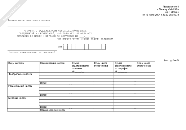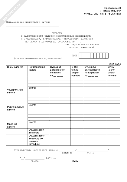 - 325Справка о задолженности сельскохозяйственных предприятий и организаций, крестьянских (фермерских) хозяйств по пеням и штрафам