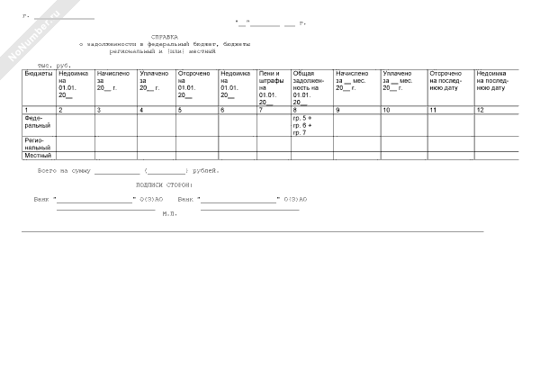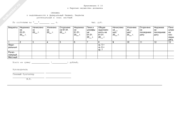 - 331Справка о задолженности в федеральный бюджет, бюджеты региональный и (или) местный (приложение к перечню имущества должника, в том числе имущественных прав)
