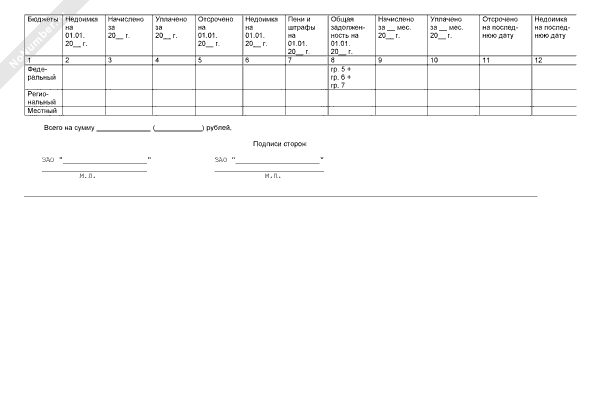 - 330Справка о задолженности в федеральный бюджет, бюджеты региональный и (или) местный (приложение к передаточному акту по договору о присоединении закрытого акционерного общества к закрытому акционерному обществу)