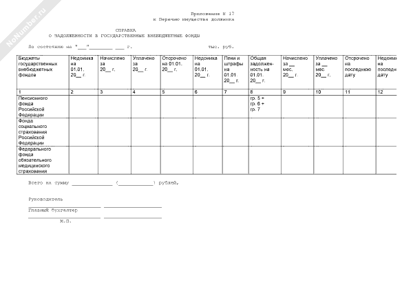- 332Справка о задолженности в государственные внебюджетные фонды (приложение к перечню имущества должника, в том числе имущественных прав)