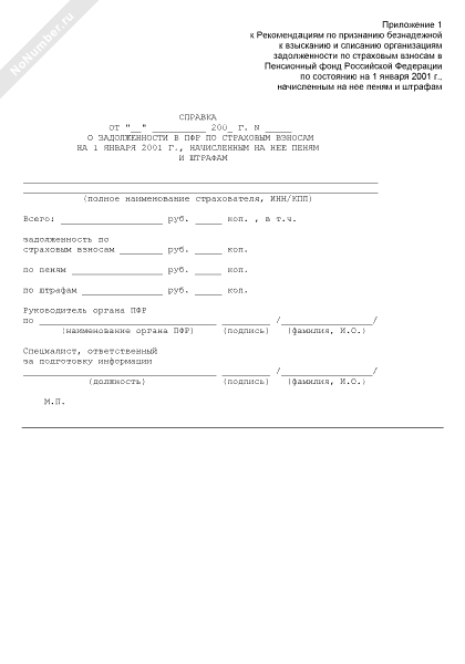- 324Справка о задолженности в ПФР по страховым взносам на 1 января 2001 г., начисленным на нее пеням и штрафам