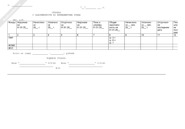 - 334Справка о задолженности во внебюджетные фонды (приложение к передаточному акту по договору о слиянии (присоединении) банков (небанковских кредитных организаций) акционерных обществ)