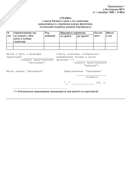 - 365Справка о массе багажа и груза и его свойствах, предлагаемого к перевозке внутри фюзеляжа, на внешней подвеске (нужное подчеркнуть)