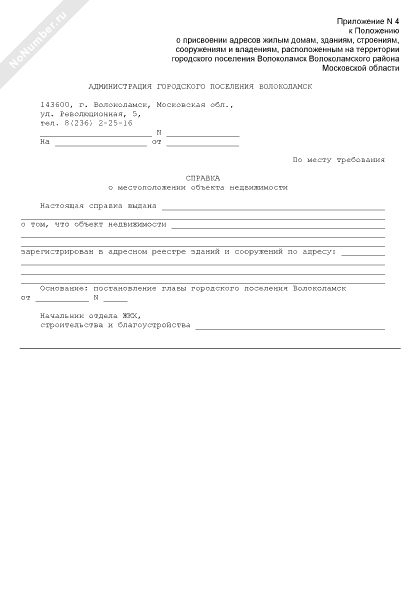 - 373Справка о местоположении объекта недвижимости городского поселения Волоколамск Московской области