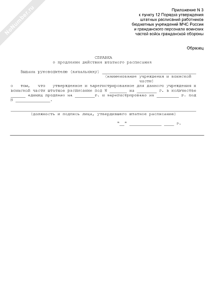 - 529Справка о продлении действия штатного расписания бюджетного учреждения МЧС России и гражданского персонала воинских частей войск гражданской обороны