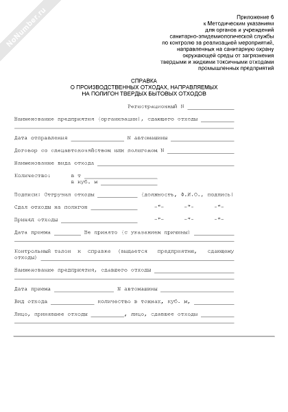 - 533Справка о производственных отходах, направляемых на полигон твердых бытовых отходов