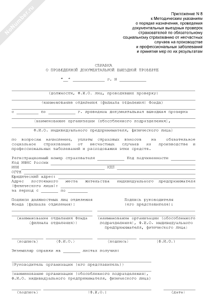 - 522Справка о проведенной документальной выездной проверке страхователя по обязательному социальному страхованию от несчастных случаев на производстве и профессиональных заболеваний