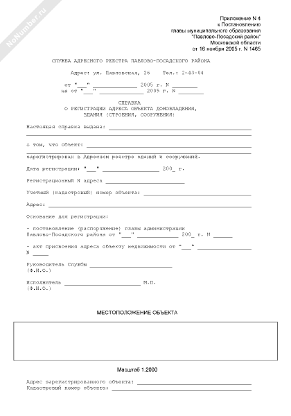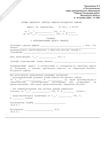 - 597Справка о резервировании адреса объекта на территории Павлово-Посадского района Московской области