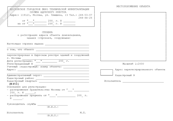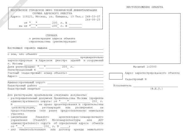 - 589Справка о регистрации адреса объекта строительства (реконструкции) в городе Москве