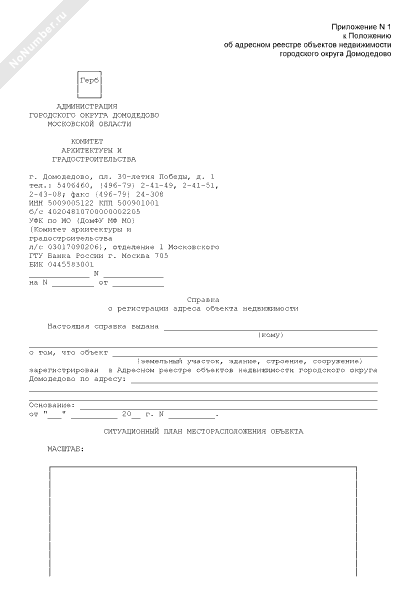 - 588Справка о регистрации адреса объекта недвижимости городского округа Домодедово Московской области