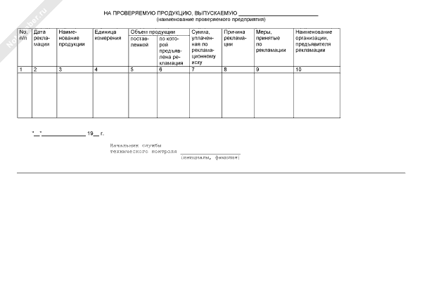 - 621Справка о рекламациях на проверяемую продукцию к акту проверки соблюдения требований стандартов и технических условий на предприятии