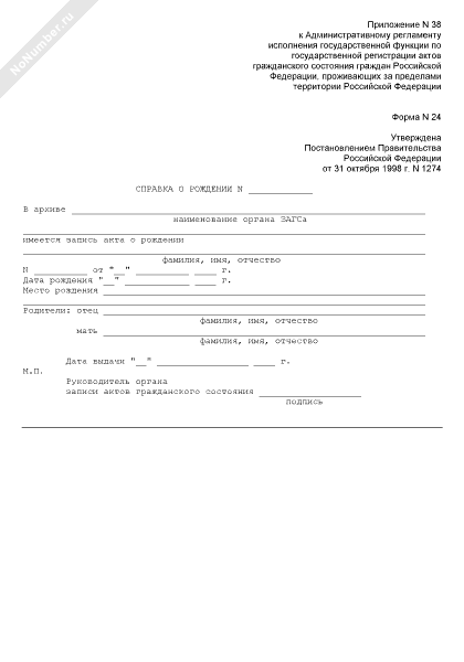 - 626Справка о рождении (для граждан Российской Федерации, проживающих за пределами территории Российской Федерации) (форма № 24)