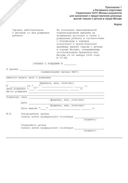 - 622Справка о рождении на получение единовременной компенсационной выплаты на возмещение расходов в связи с рождением ребенка для предъявления в органы социальной защиты населения города Москвы