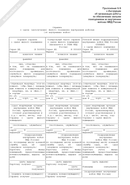 - 630Справка о сдаче (неполучении) жилого помещения внутренним войскам (от внутренних войск)
