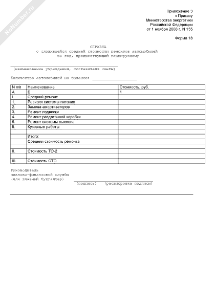 - 632Справка о сложившейся средней стоимости ремонтов автомобилей за год, предшествующий планируемому (форма № 18)