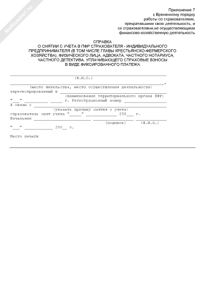- 640Справка о снятии с учета в ПФР страхователя — индивидуального предпринимателя (в том числе главы крестьянско-фермерского хозяйства), физического лица, адвоката, частного нотариуса — работодателя