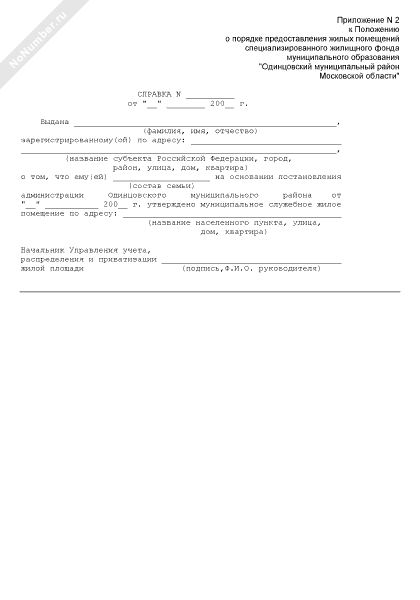 - 641Справка о снятии гражданина и членов его семьи с регистрационного учета по прежнему месту жительства, проживающему на муниципальной служебной жилой площади в Одинцовском муниципальном районе Московской области (с постоянной регистрацией по месту жительства), выдаваемая для заключения договора найма другого служебного жилого помещения