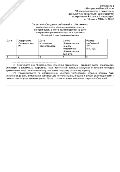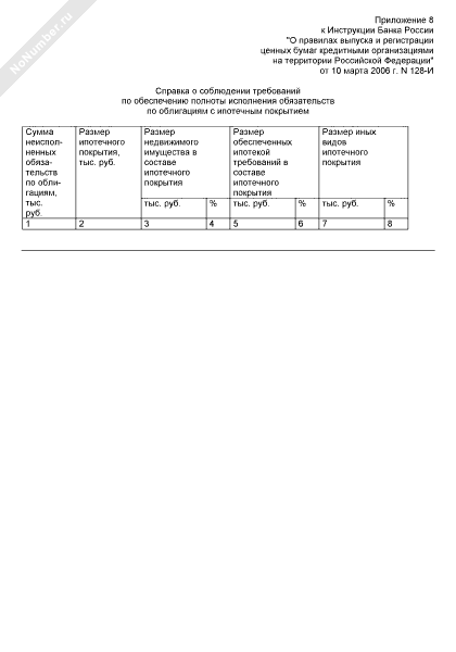 - 642Справка о соблюдении требований по обеспечению полноты исполнения обязательств по облигациям с ипотечным покрытием на дату утверждения решения о выпуске и проспекта облигаций с ипотечным покрытием