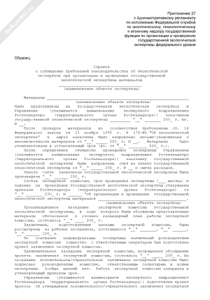- 646Справка о соблюдении требований законодательства об экологической экспертизе при организации и проведении государственной экологической экспертизы материалов