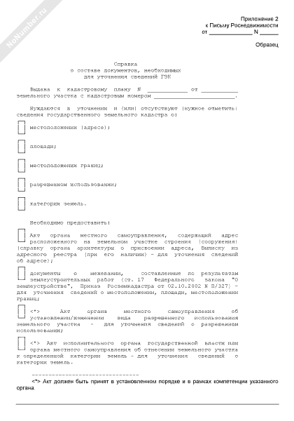 - 652Справка о составе документов, необходимых для уточнения сведений государственного земельного кадастра