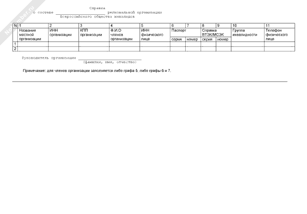 - 655Справка о составе региональной организации Всероссийского общества инвалидов
