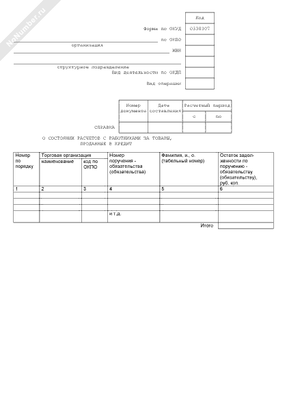- 658Справка о состоянии расчетов с работниками за товары, проданные в кредит. Унифицированная форма № КР-7