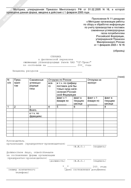 - 768Справка о фактическом производстве и отгрузках сжиженных углеводородных газов