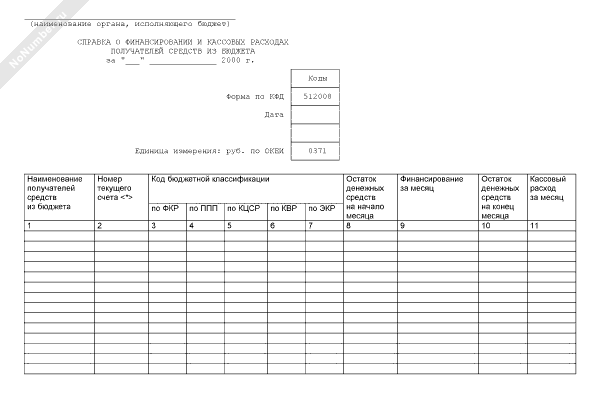 - 779Справка о финансировании и кассовых расходах получателей средств из бюджета. Форма № 512008