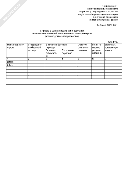 - 775Справка о финансировании и освоении капитальных вложений по источникам электроэнергии (производство электроэнергии) (таблица № П1.20.1)