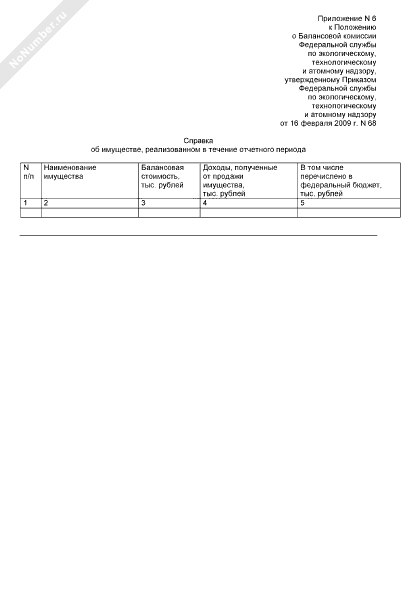 - 852Справка об имуществе, реализованном в течение отчетного периода, представляемая федеральными государственными унитарными предприятиями и федеральными государственными учреждениями, находящимися в ведении Федеральной службы по экологическому, технологическому и атомному надзору, для рассмотрения Балансовой комиссией