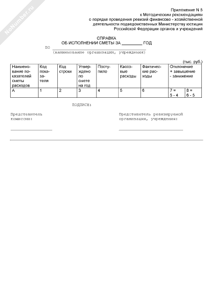 - 854Справка об исполнении сметы расходов при проведении ревизий финансово-хозяйственной деятельности подведомственных Министерству юстиции Российской Федерации органов и учреждений