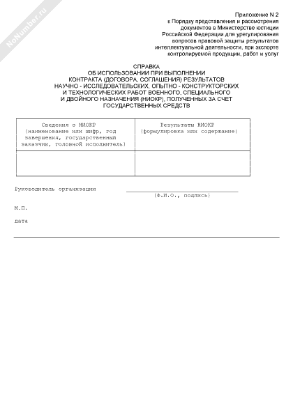 - 857Справка об использовании при выполнении контракта (договора, соглашения) результатов научно-исследовательских, опытно-конструкторских и технологических работ военного, специального и двойного назначения (НИОКР), полученных за счет государственных средств