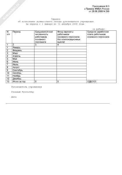 - 867Справка об исчислении должностного оклада руководителя учреждения Федерального медико-биологического агентства за период с 1 января по 31 декабря 2008 года