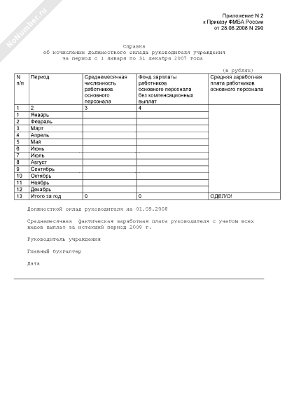 - 866Справка об исчислении должностного оклада руководителя учреждения Федерального медико-биологического агентства за период с 1 января по 31 декабря 2007 года