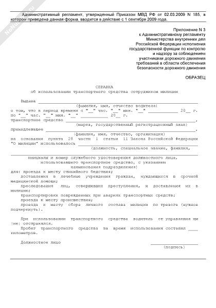 - 864Справка об использовании транспортного средства сотрудником милиции