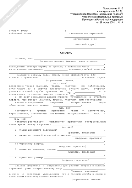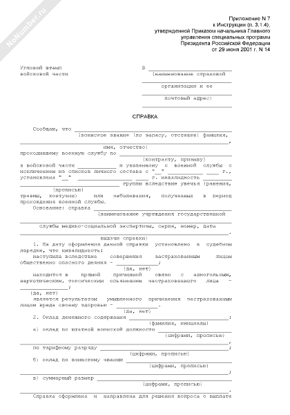 - 875Справка об обстоятельствах наступления страхового случая и размере оклада денежного содержания застрахованного лица (военнослужащего) в случае установления инвалидности в период прохождения военной службы